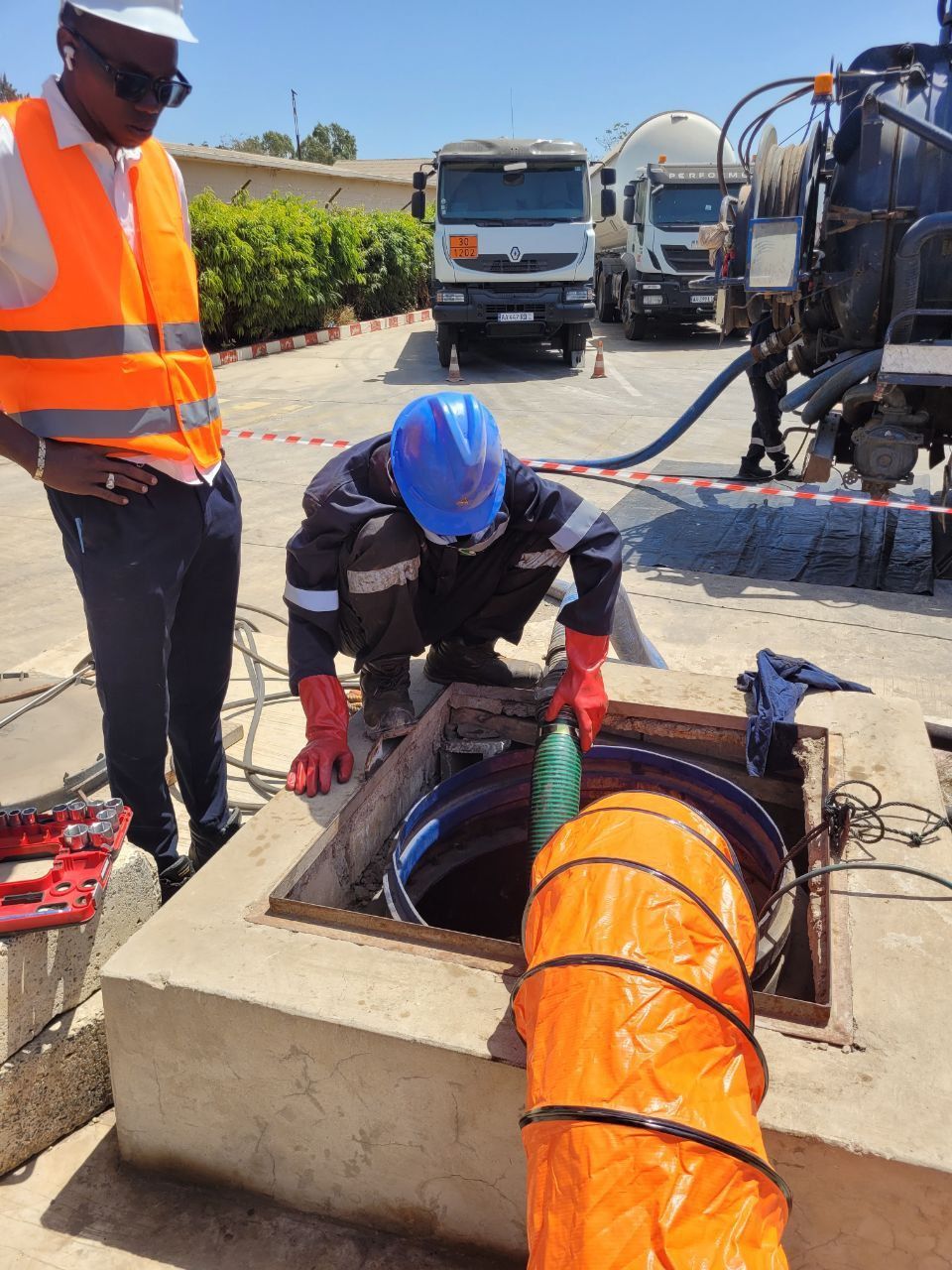 Camions aspirateurs : Les camions-aspirateurs sont utilisés pour aspirer les liquides, les boues et les débris des réservoirs, ce qui permet un nettoyage en profondeur et l'élimination des déchets.